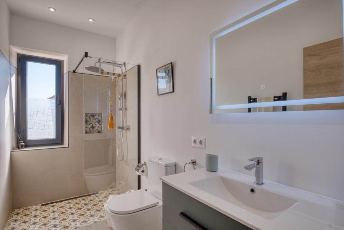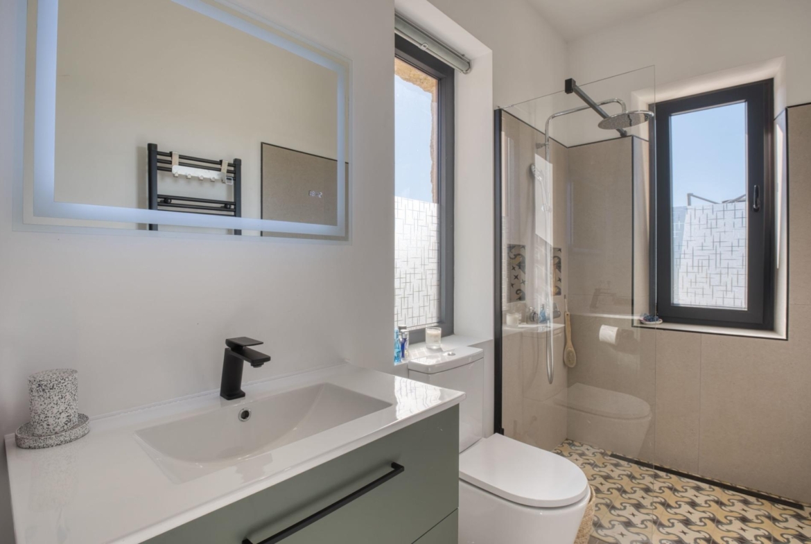 Sypialnie są przestronne i wyposażone w zabudowane szafy oraz prywatne łazienki. Jeśli trzy sypialnie to dla Ciebie za mało, możesz zaadaptować stary dom, który znajduje się obok na dodatkową sypialnię lub domek gościnny. Dom ma powierzchnię 50 m2. Ponadto pompa ciepła i kominek zapewniają przytulne ciepło w chłodniejsze dni.